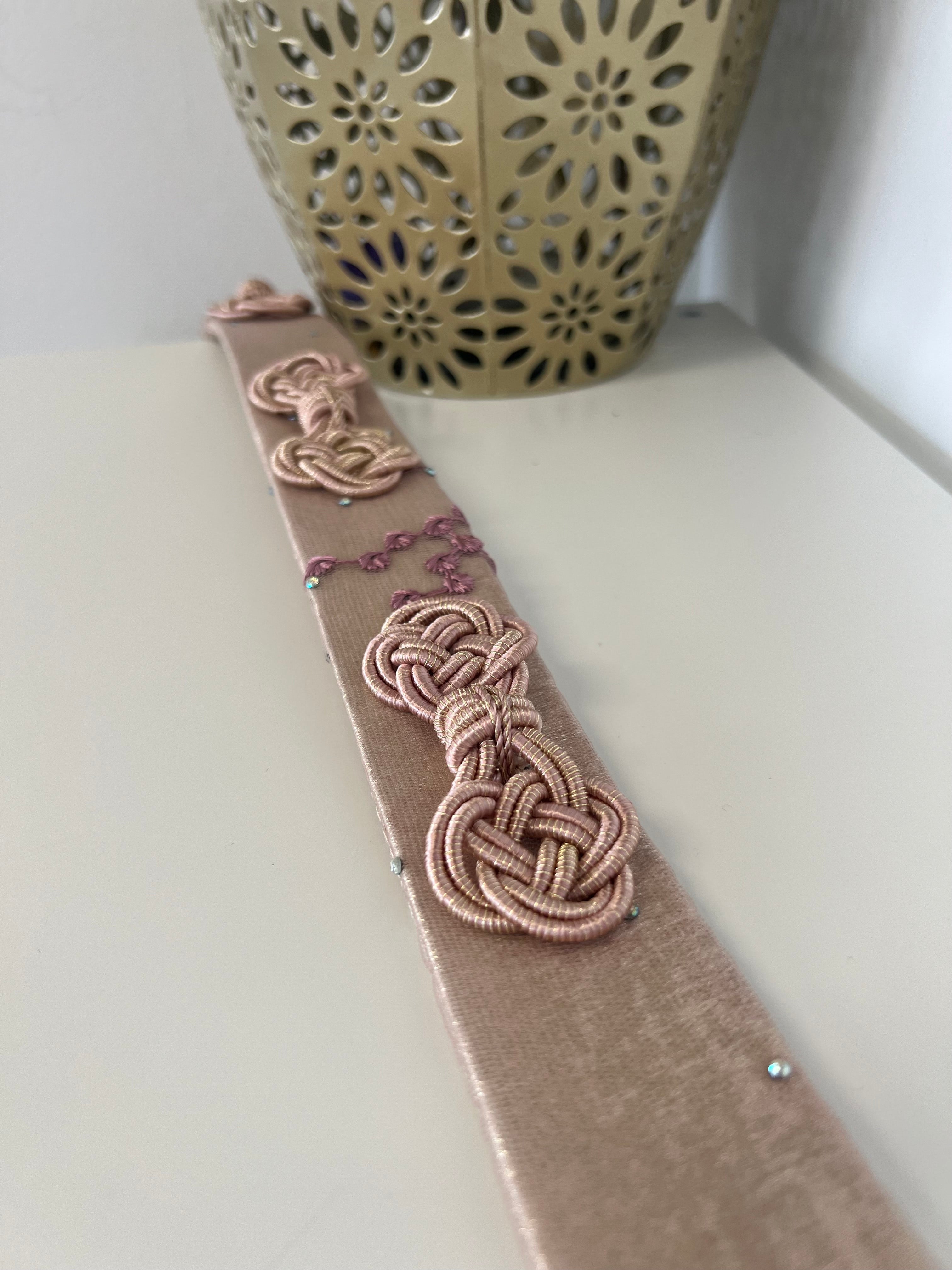 Chaque ceinture est façonnée à la main en parfaite adéquation avec le caftan qui l’accompagne, garantissant une harmonie totale entre la couleur, les motifs et le design. Un travail sur-mesure qui souligne l’élégance de chaque création.