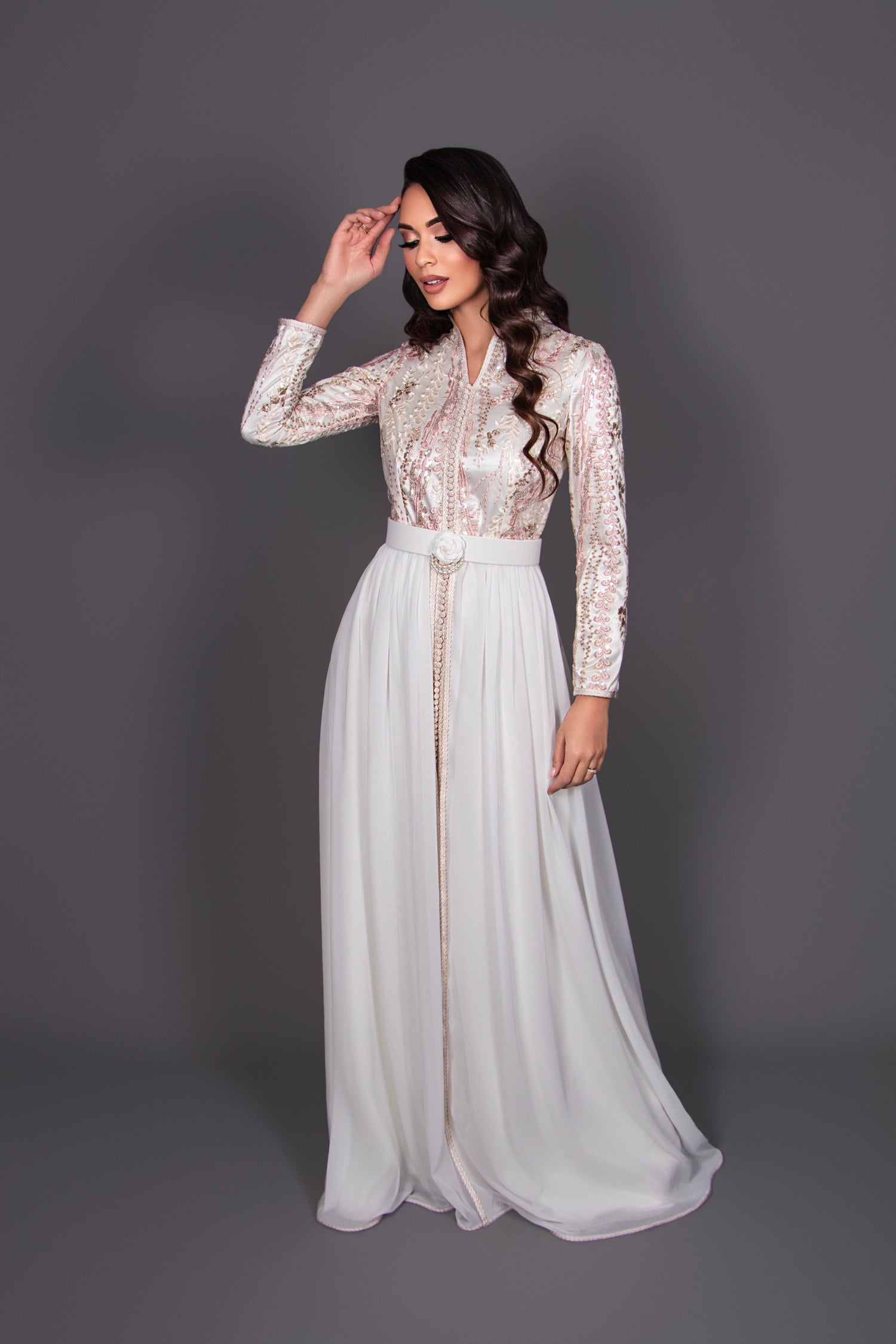 Nos caftans sont soigneusement confectionnés dans notre atelier situé près de Rabat, au Maroc. Chaque pièce est créée individuellement, sans production en série, respectant ainsi l'essence même du caftan.