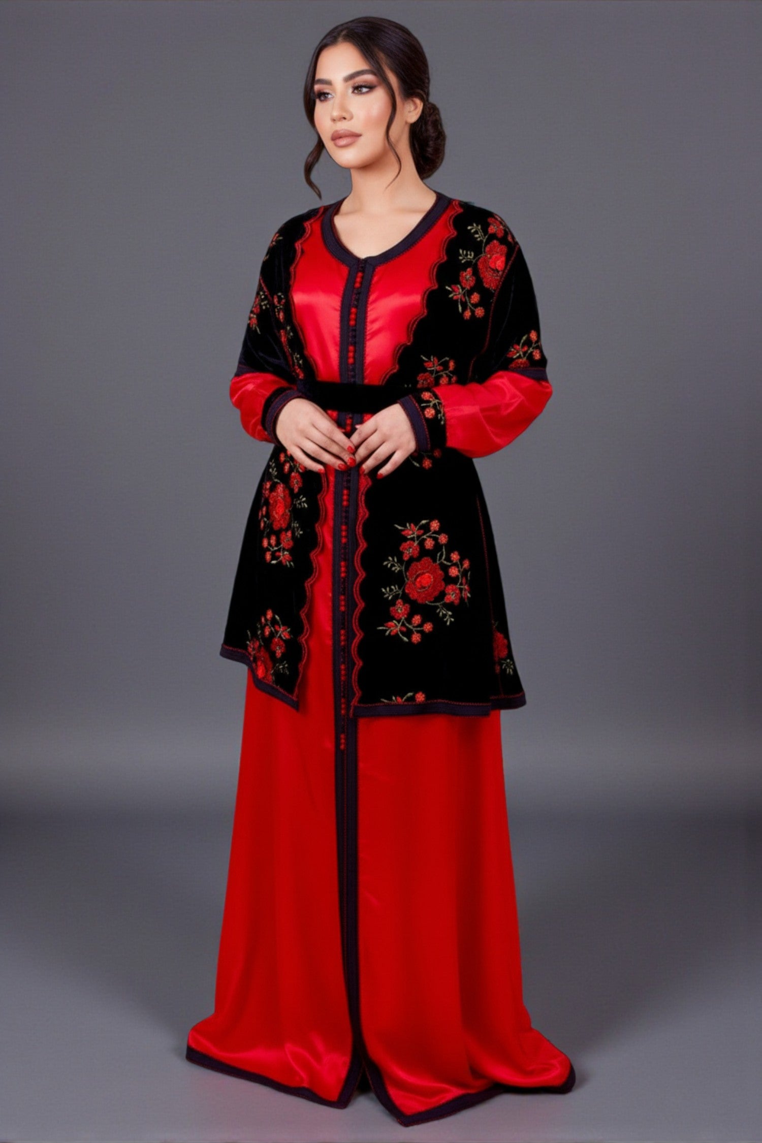 Nos caftans sont soigneusement confectionnés dans notre atelier situé près de Rabat, au Maroc. Chaque pièce est créée individuellement, sans production en série, respectant ainsi l'essence même du caftan.