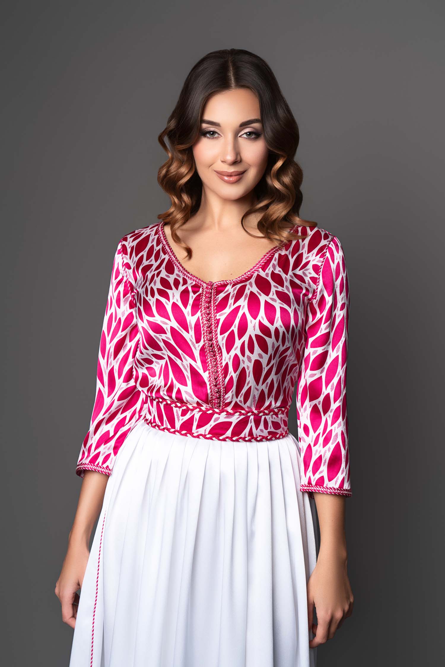manches 3/4 pour le coté pratique, fine Sfifa et boutons pour la touche marocaine.