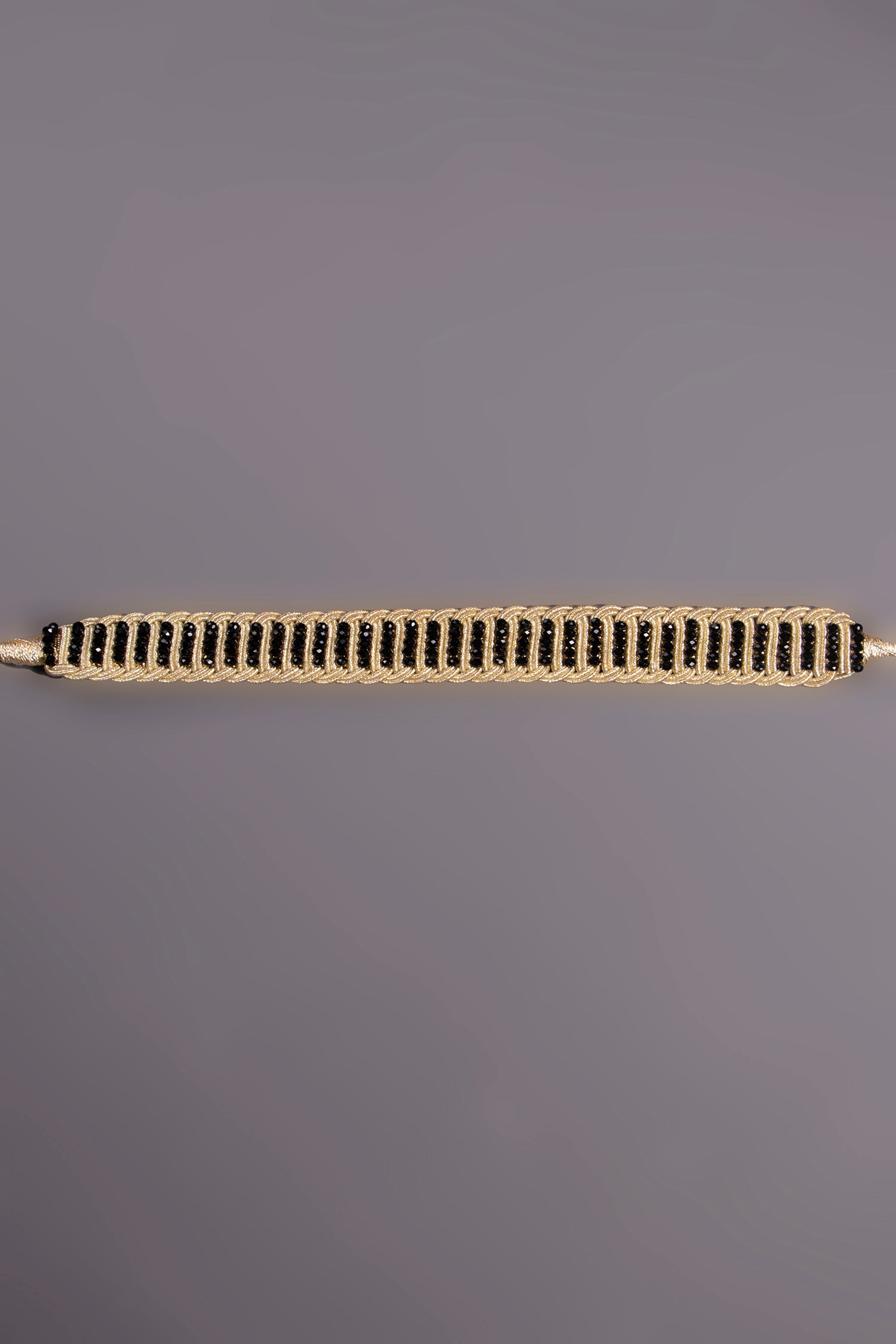 La Ceinture Atlas, tressée à la main avec des fils d’or étincelants et parsemée de perles délicates, est l’accessoire parfait pour twister votre caftan avec élégance. Facile à nouer et légère, elle sublime votre taille tout en ajoutant une touche de charme et de raffinement à votre look. Un petit coup de magie dorée qui fait toute la différence !