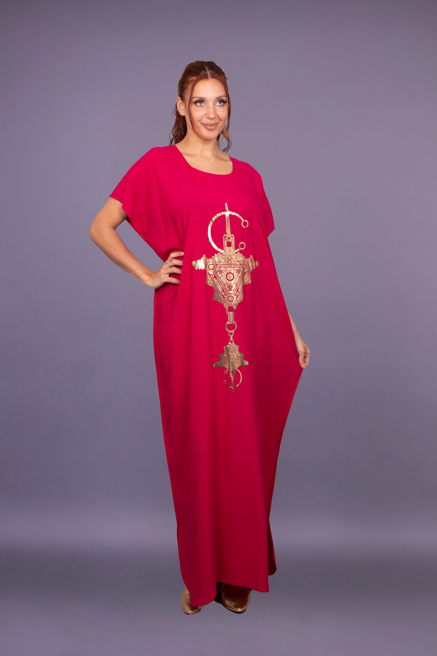Découvrez le Caftan Akira Fushia, une pièce alliant confort et élégance. Son intérieur en coton doux assure une sensation agréable sur la peau, tandis que l’ornement doré apporte une touche de luxe et de sophistication. Parfait pour celles qui veulent se démarquer avec style et assurance.